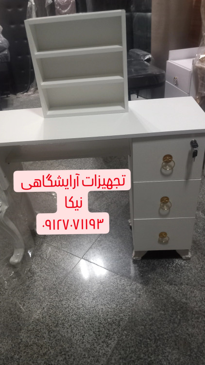 میز ناخن چوبی تمام سفید همراه با استند لاک