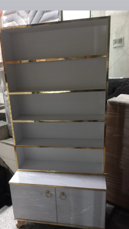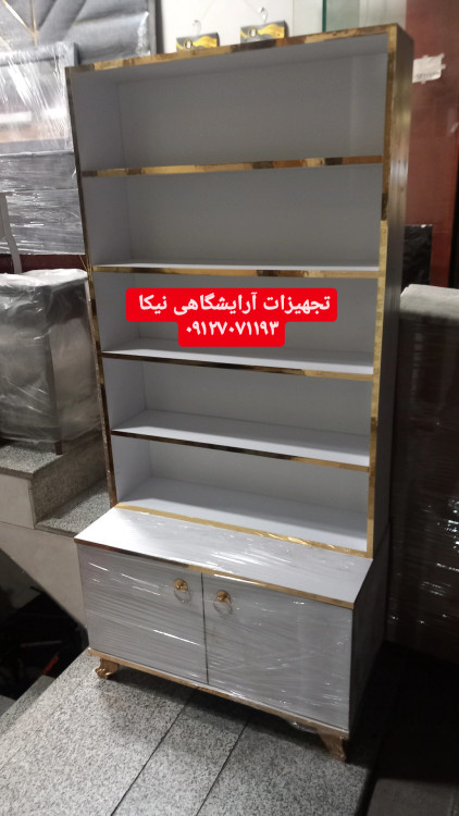 استند لاک و دکور آرایشگاهی دوتیکه سفید نوار طلایی