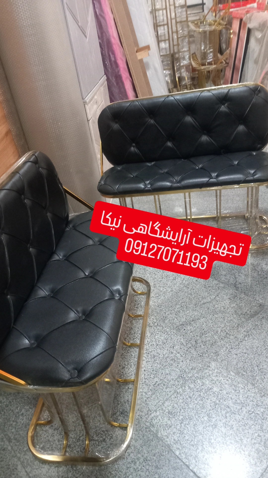 نیمکت انتظار بدنه فلزی آبکاری شده درسه رنگ طلایی. نقرهای ومشکی